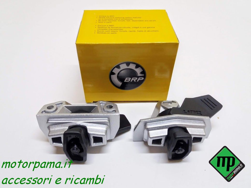 Supporto di base per gancio rapido da utilizzare per il fissaggio del baule ( bauletto) sul pianale porta oggetti Can-am Outlander versione L. Il kit è formato da 4 Pz con relativi viti BRP 715002350 cod 1173