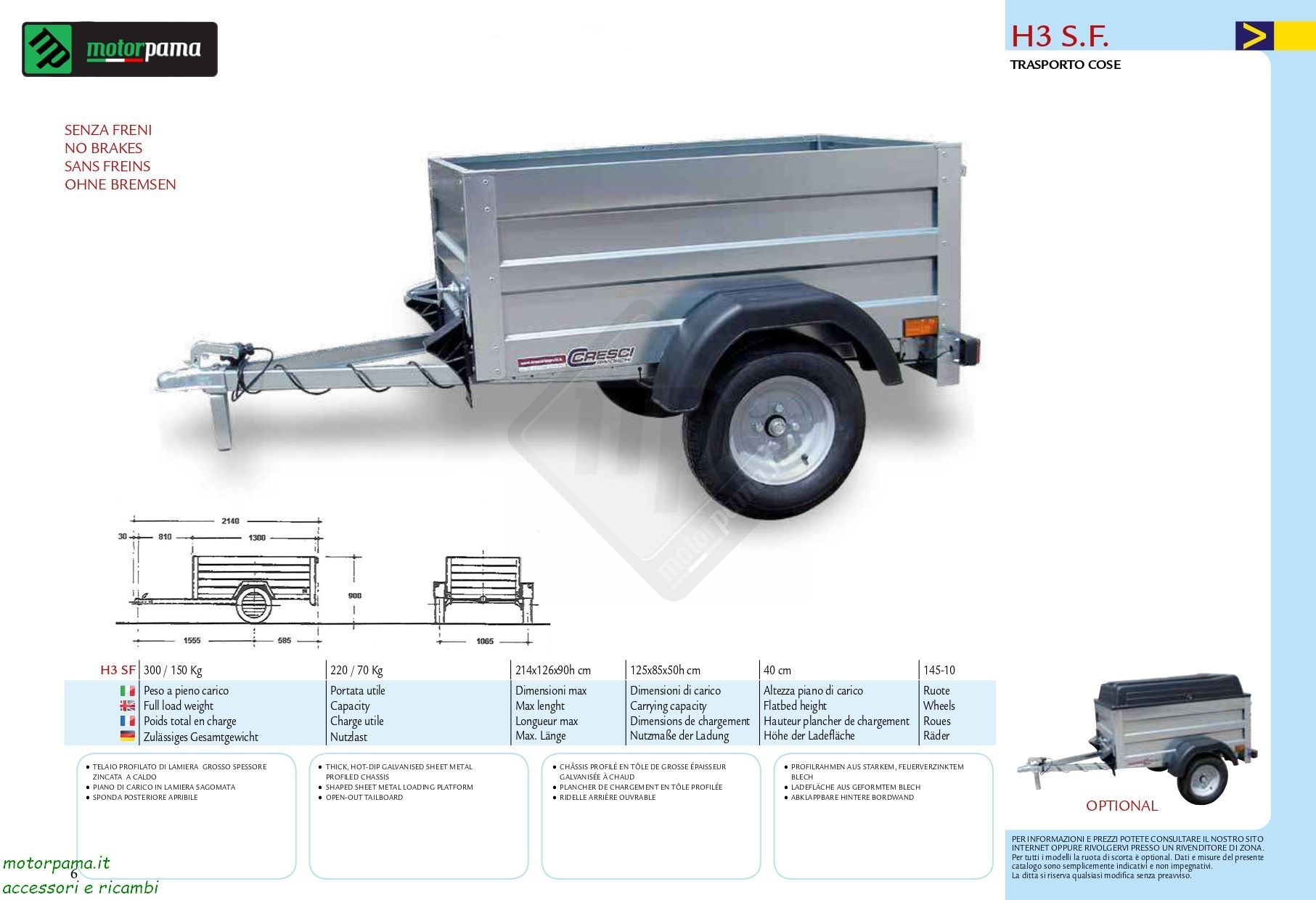 | Dimensioni utili di carico | 125 x 85 x 50 cm |