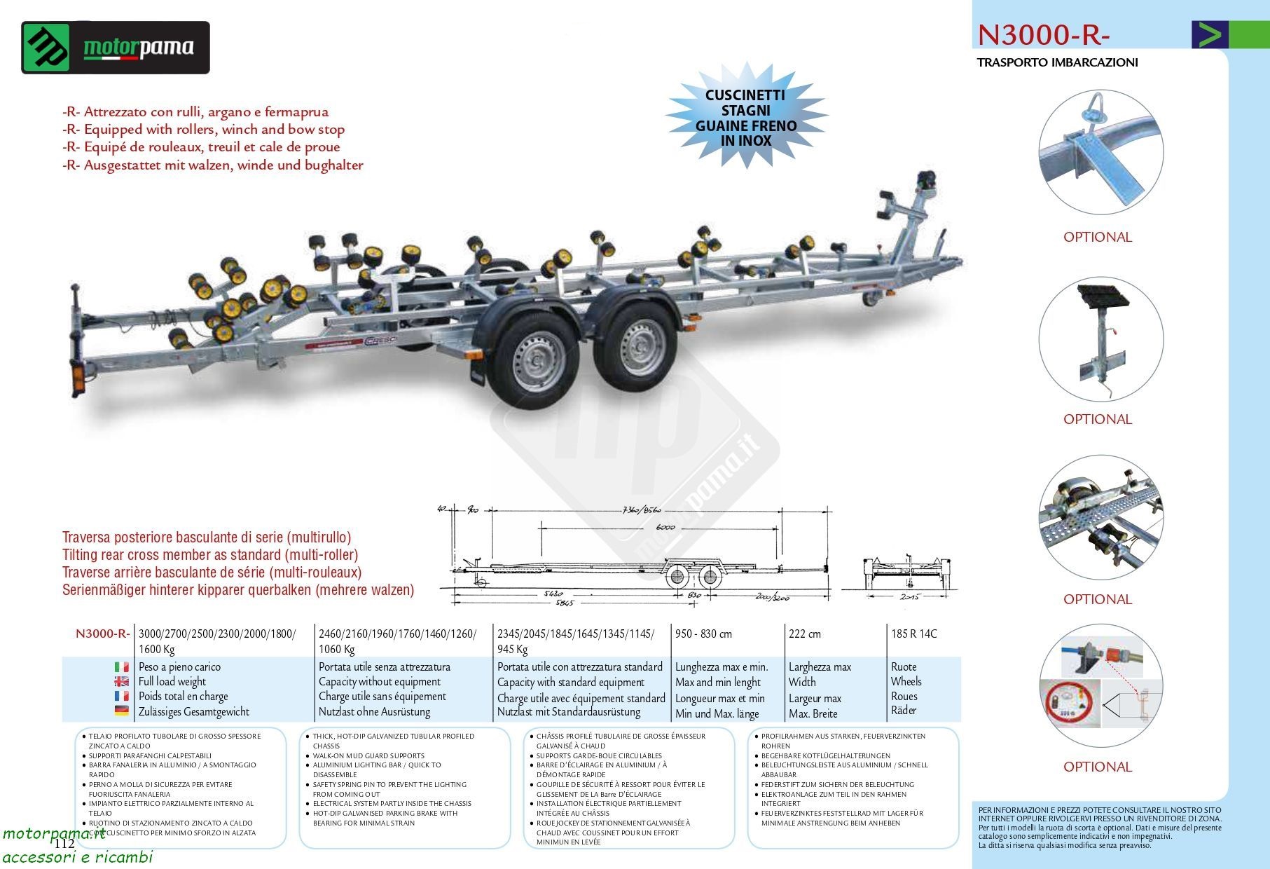 Passerella per sgancio aggancio alaggio (a richiesta) sella regolabile a vite (a richiesta) supporto ruota di scorta a richiesta N3000-R-